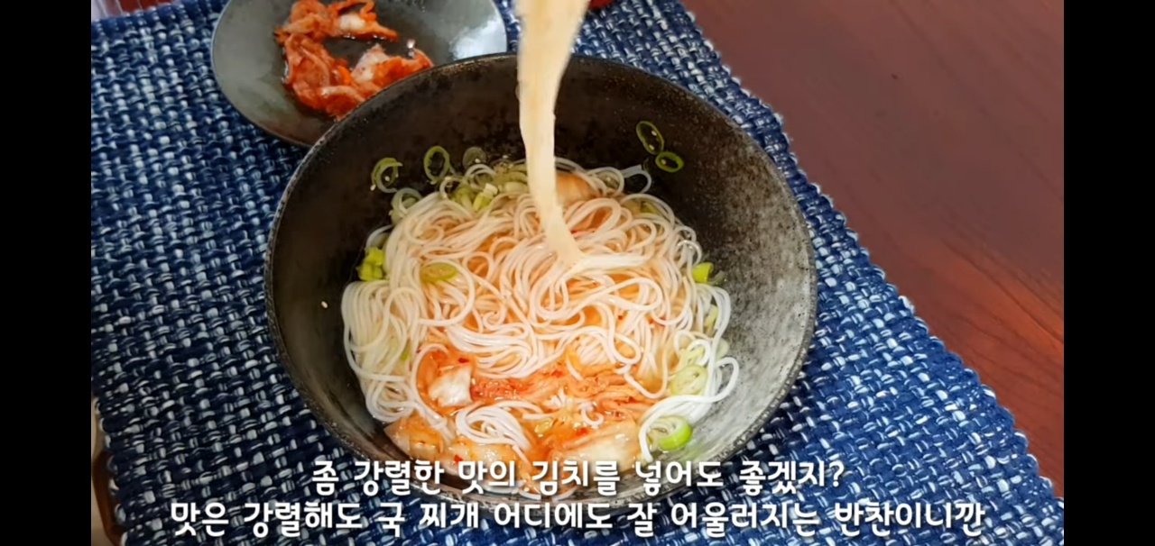 멸치국수를 더욱 맛있게 먹고 싶으면 묵은지 등 기호게 맞게 맛있는 고명을 더 올려서 먹으면 된다!