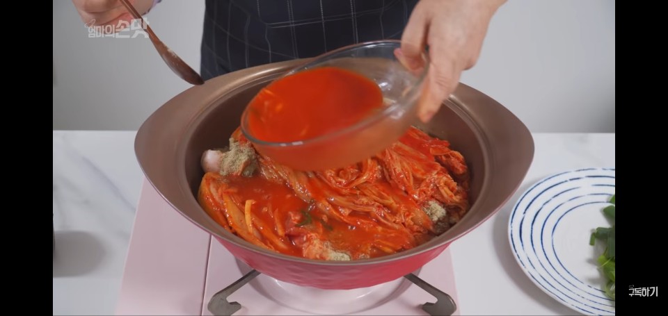 이제 김치찜 황금레시피에 들어가는 재료들을 잘 쌓아보자.